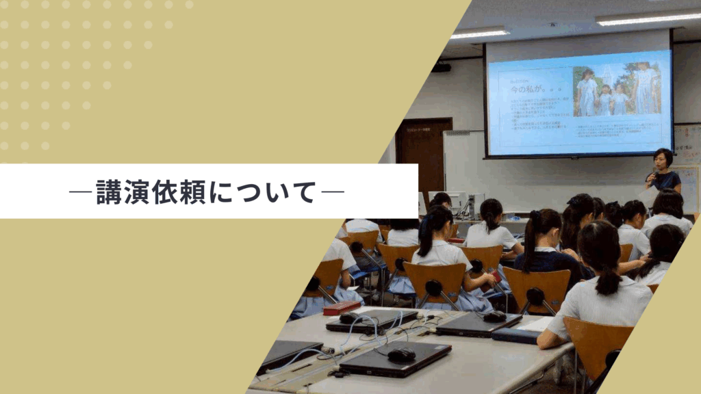 講演実績:愛知県立愛知商業高等学校、名古屋市立北高等学校、名古屋ユネスコ、TED×Toyotakosen、大阪大学大学院、聖心会みこころセンター(オンデマンド講座)、小林聖心女子学院 ほか